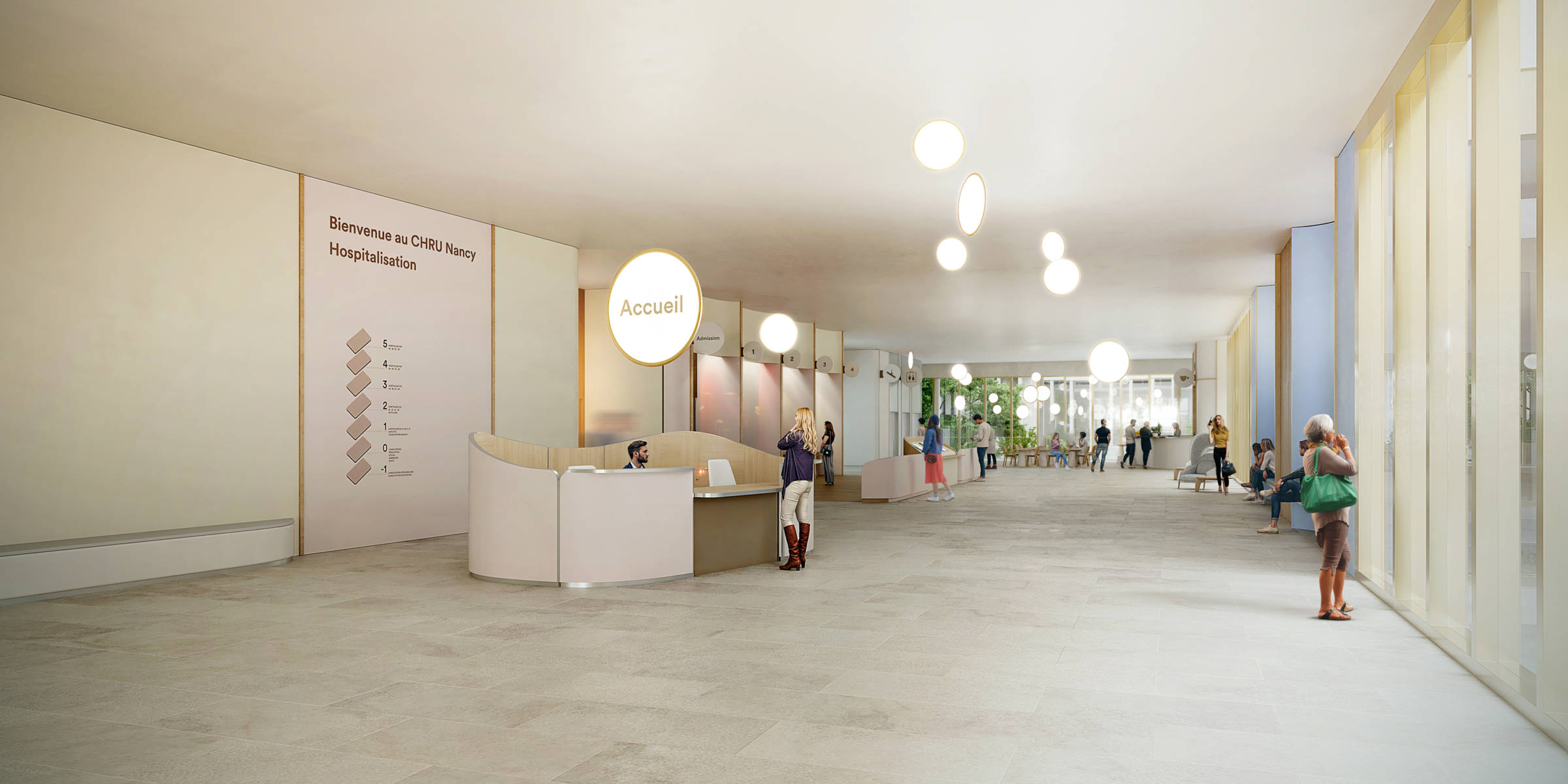 The new hospital in Nancy immediately stands out for its innovative features : a hospital district surrounded by a resource garden, a balance between nature, technology and design. The district’s tipology of connected poles is located in a resource garden, a real green lung. Reconnecting with the ground, feeling in harmony with the living world, letting the light in, these are some of the “free and sustainble” benefits, which can be enjoyed by the medical staff as well as the hospitalized people.