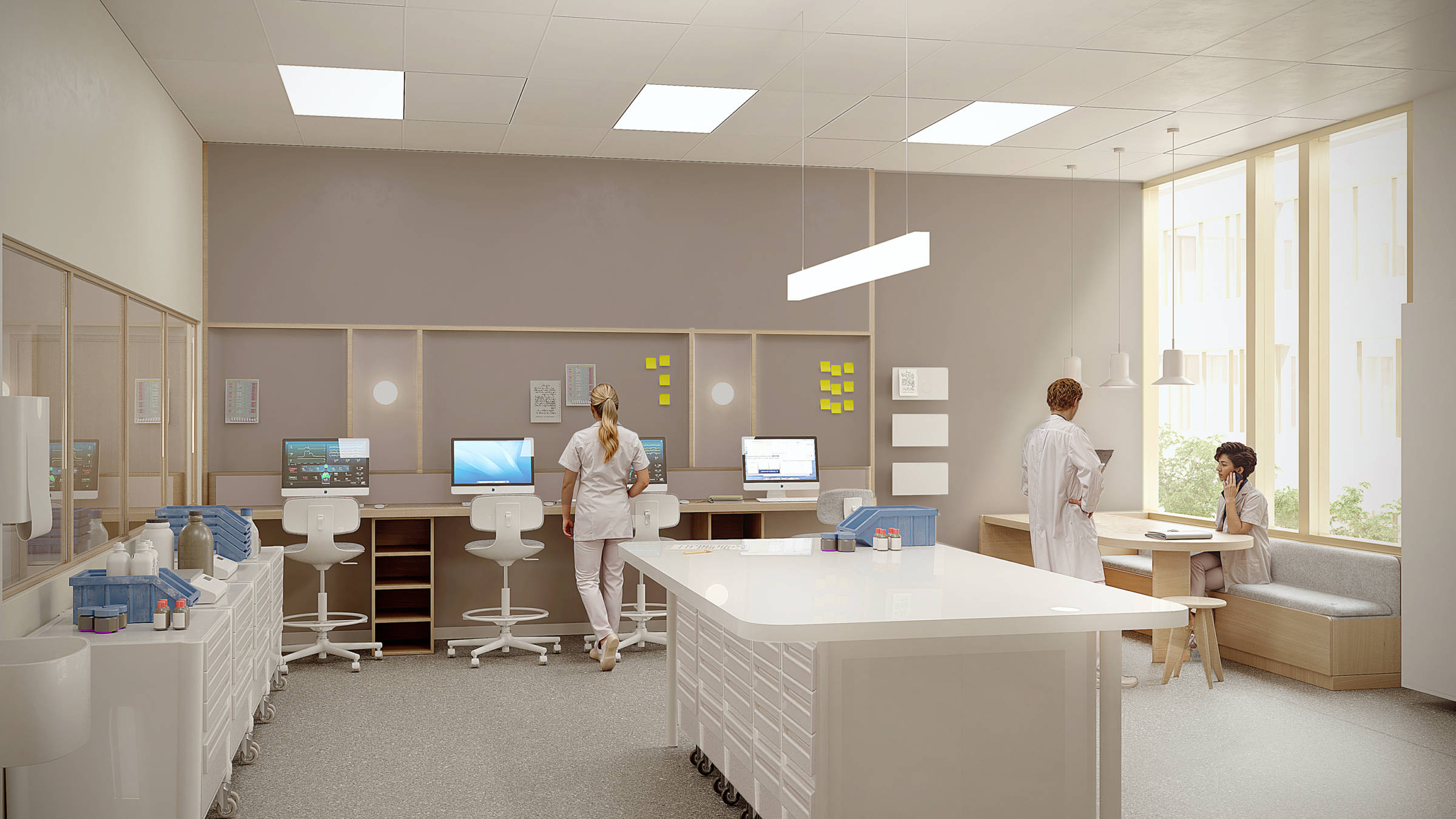 The district is built on a strong technological infrastructure combining along the latest state-of-the-art technologies, such as the artificial intelligence. The hospital district’s interiors are really taken care of, being designed with the ergonomics of multiple uses as a purpose. Conceived as a new “CARE” design method in the hospital, its spaces allow either a warm welcoming of the hospitalized people, as well as the team-spirit and cooperation of the medical staff.