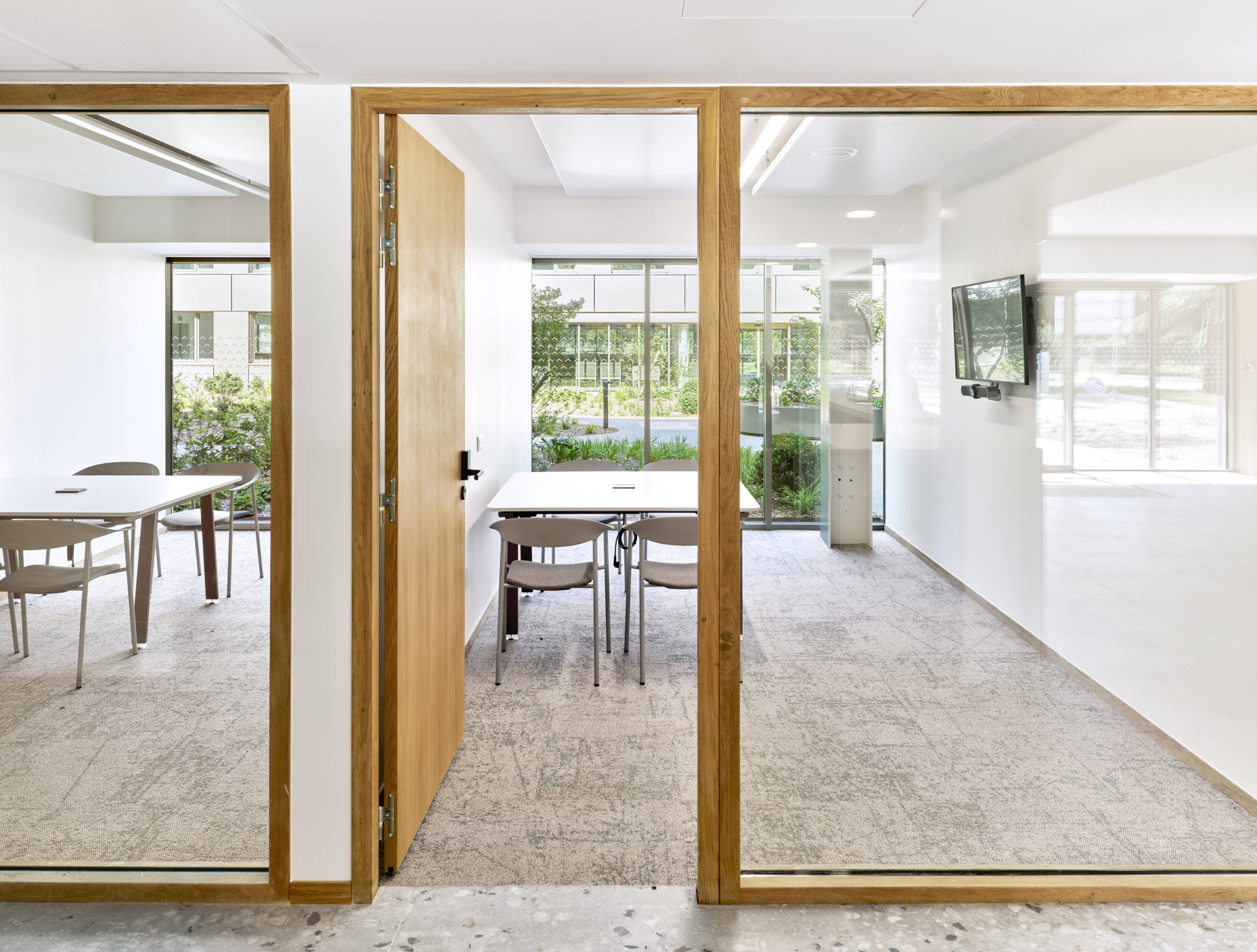 Near Grenoble, in Meylan, Groupe-6 is refurbishing a former Schneider Electric office building for the Codevim Group, ideally located in a green setting allowing a 360° view of the three-mountain-ranges. Built in the 60s, this large industrial hall was first converted into offices in the 80s. With its original 12x12m grid, reduced to 6x6m, during its first renovation, the building proved to be easily adaptable. The open space floors on 3 levels and the exposed metal framework contribute to the clean, contemporary ambience of its workspaces. Cleared of peripheral volumes, the enlarged central patio extends the spaces at the future tenants’ disposal (sharing meeting rooms, relaxation areas) and opens onto the park, enabling outdoor working areas. The large windows, whose size increases as climbing the floors, allow an exceptional view over the surrounding area, letting in a depth lighting for the landscaped floors, served by 4 ascents in the corners of the patio. This major refurbishment will enable a thermal and environmental upgrade to BREEAM high standard. To the north of the plot, a housing project, also designed by Groupe-6, is on-going. The site maintains its extraordinary features, and its tree-filled area grants its campus-like look, surrounded by a mountainous landscape overlooking the site.