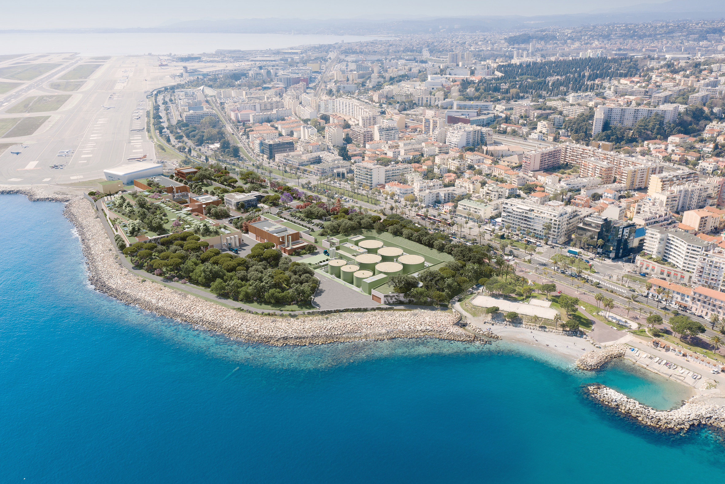 The site plan proposes a stratification of buildings, from the city to the sea: the facade on the Promenade des Anglais is perfectly integrated into the city, in continuity with the landscape, a serving strip then hosts the storage and process areas, and finally the process area, on the seafront, completely integrated. The architecture of the factory will be in harmony with the city, staged by its green spaces, and dressed in noble materials (stone, terracotta). Inspired by the Haliotis shell, it offers a gradient of shades of its facades, which go from red ochre in urban facade to white ochre near the sea.