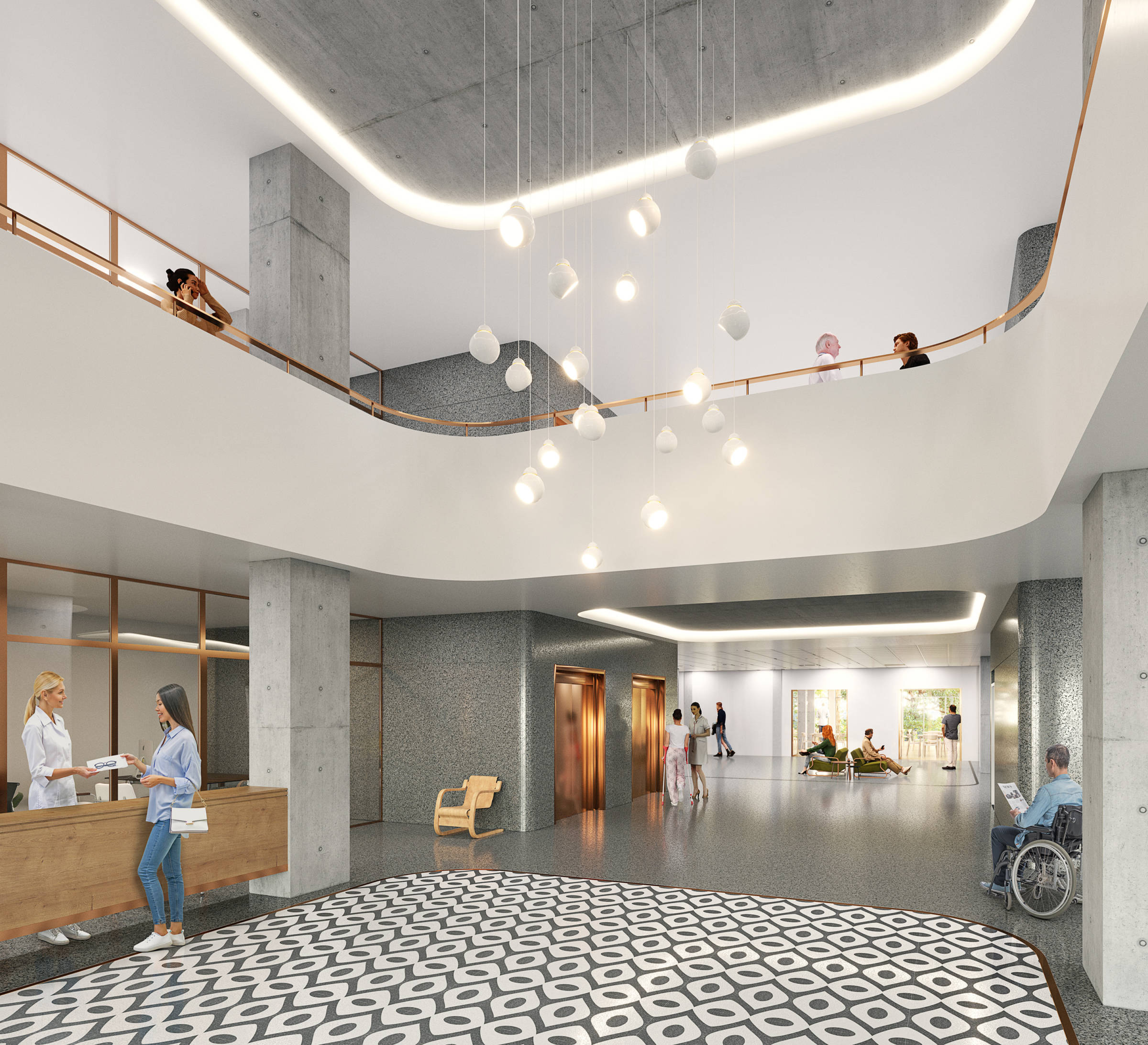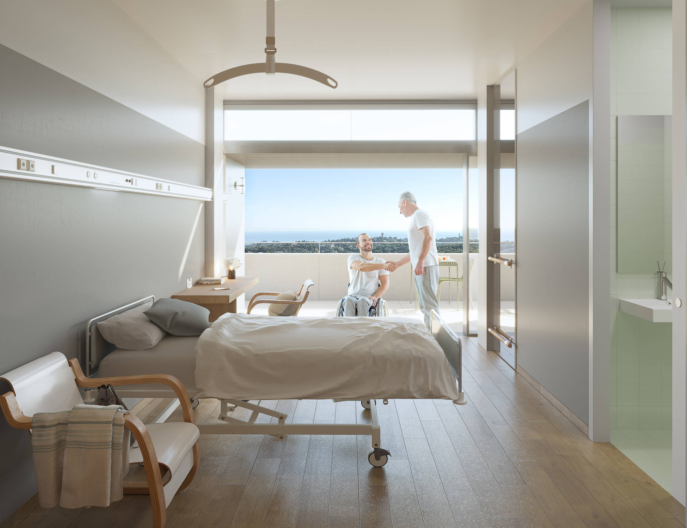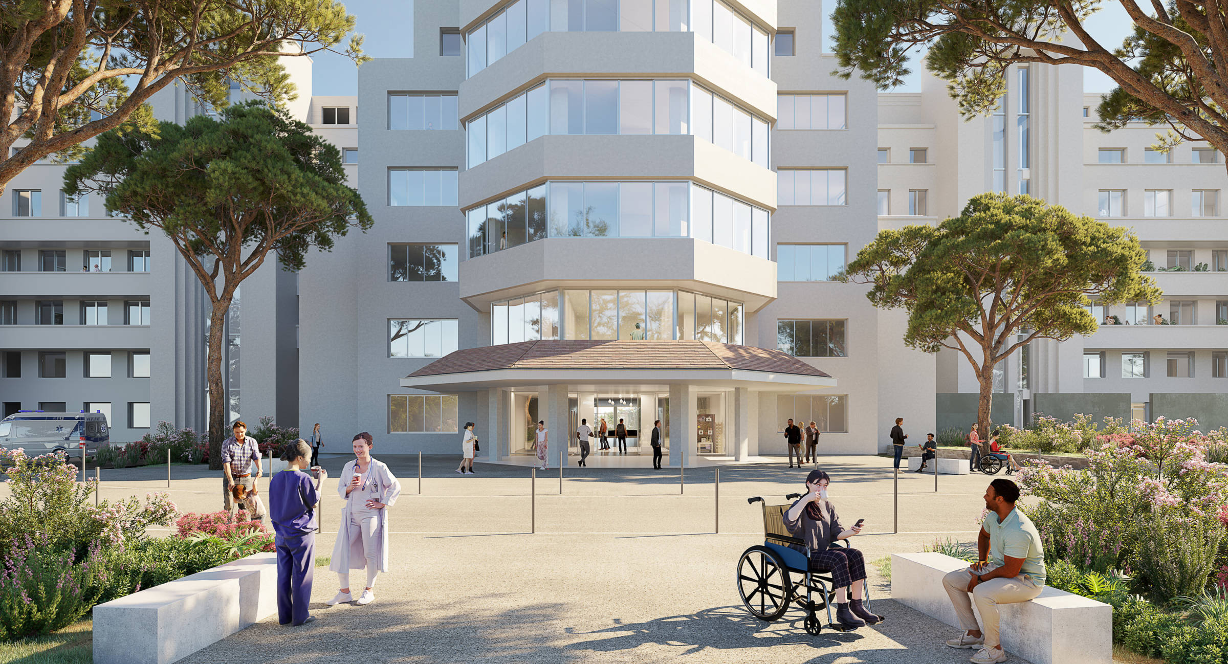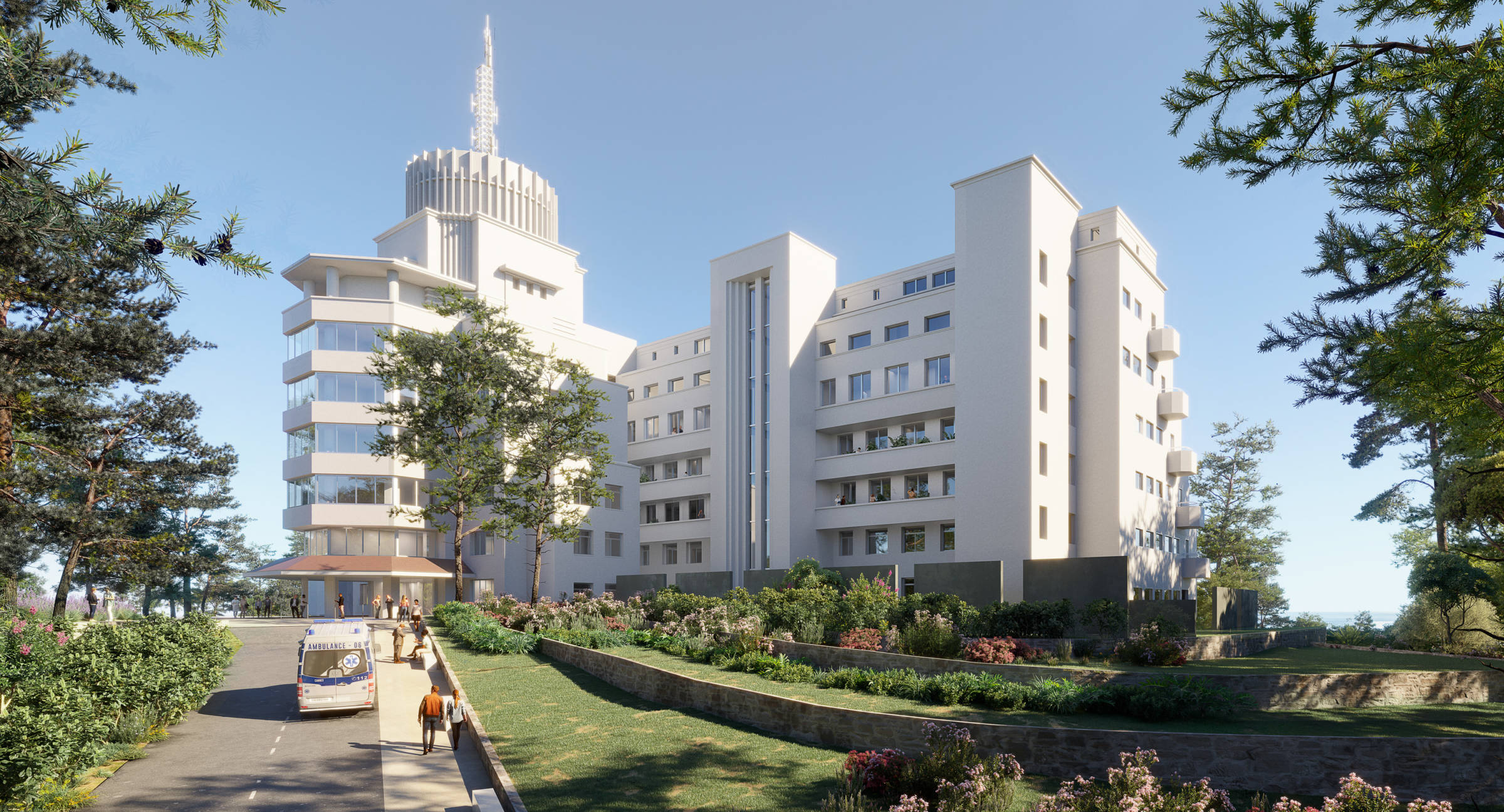 Véritable patrimoine architectural, le centre Hélio-Marin, domine les baies de Cannes et Antibes dans un cadre privilégié qui garantit bien-être et détente. L’architecture 1930 de la Rotonde a retrouvé l’élégance et la générosité de sa modénature d’origine. Sur la façade Sud, les pans de verre en gradins sont placés dans leur recul de 1934 pour être naturellement protégés du soleil. Toutes les activités rayonnent autour du noyau d’ascenseurs : dans la Rotonde, les activités de l’hôpital de jour ont trouvé place dans l’architecture très sculptée des années 30.